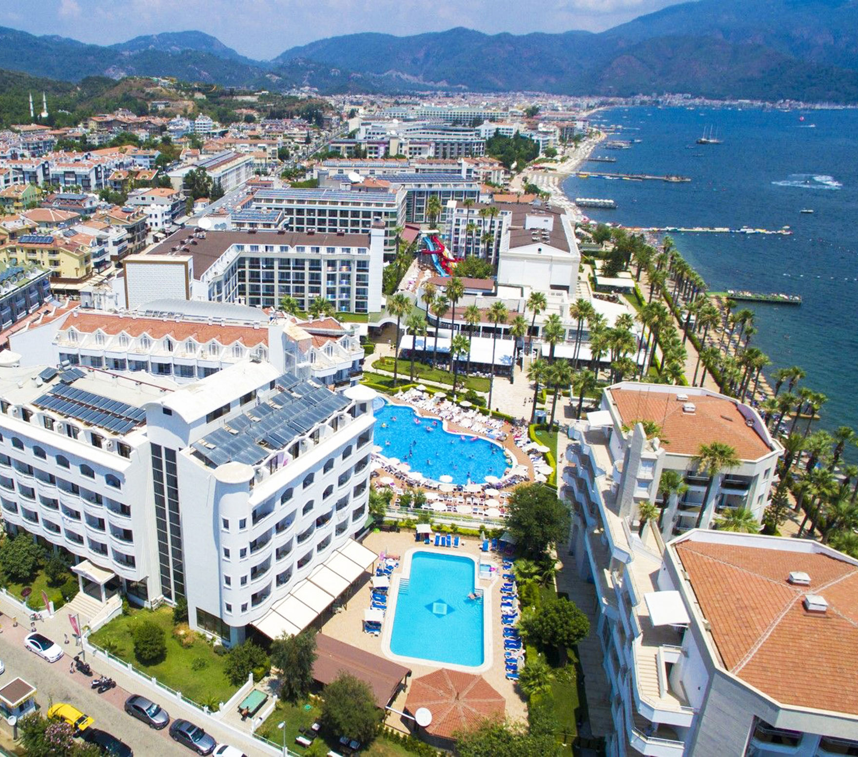 My Dream Hotel is located in Marmaris-Sites, 95 km from Dalaman Airport. It is 4 km from the center of Marmaris. located at a distance. The facility, which provides service in the bed & breakfast and half board concept, has 95 rooms and is 50 m from the sea. located at a distance. In the pool; The use of sunbeds, umbrellas and mattresses is free of charge, and the public beach is used.